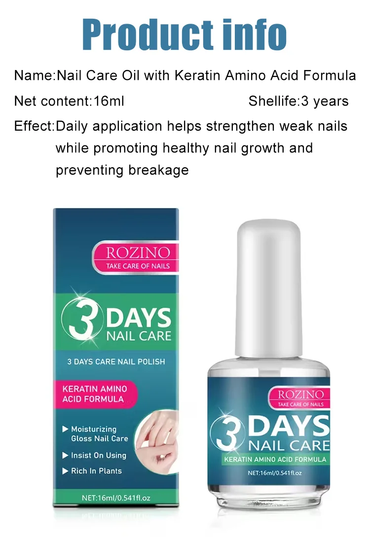 3 Days Nail Care Formula with Keratin Amino Acid & Aloe for Superior Nail Nourishment 16ml Bottle for Healthy Nails Manicure