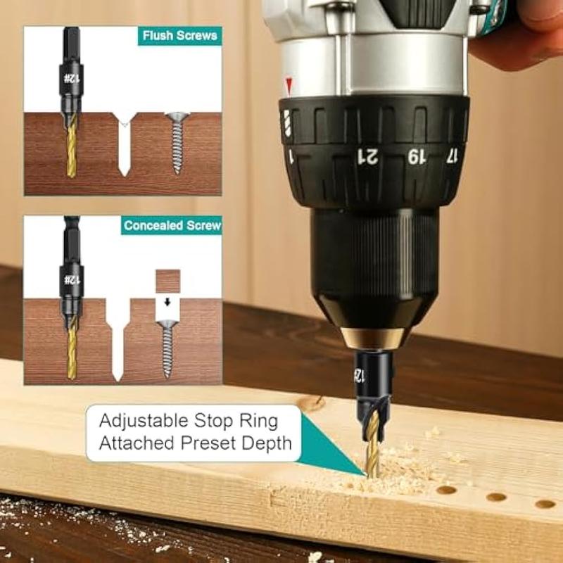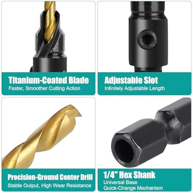 Adjustable Depth Control: The pilot drill bit length is easily adjustable with the included hex wrench, allowing precise depth settings for consistent countersinks every time.